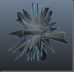 - Select your sphere and in vertex mode randomly select, using constraints, a small percentage of vertices scaling them out.
